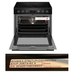 Spisarnas serienummer finns på typskylten längst upp i kanten på höger sida innan själva ugnsrummet, samt på spisens baksida.