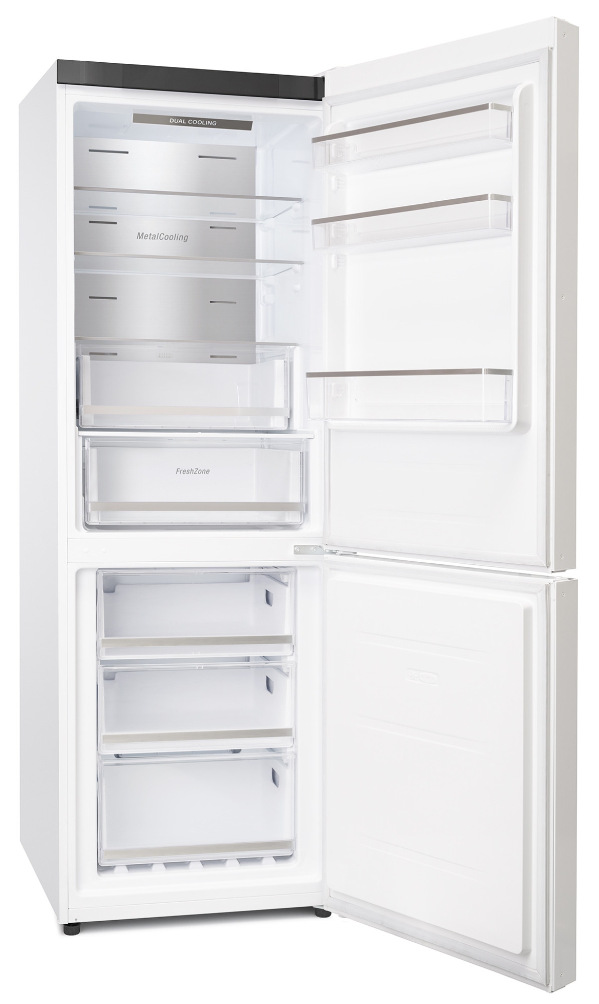 Med DualCooling bevaras den höga luftfuktigheten i kylavdelningen, eftersom kyl och frys kyls ned separat. Därför kommer heller inte torr luft eller lukter in från frysen till kylavdelningen. Den höga luftfuktigheten gör att t.ex. grönsaker håller sig färska och inte torkar ut så snabbt.